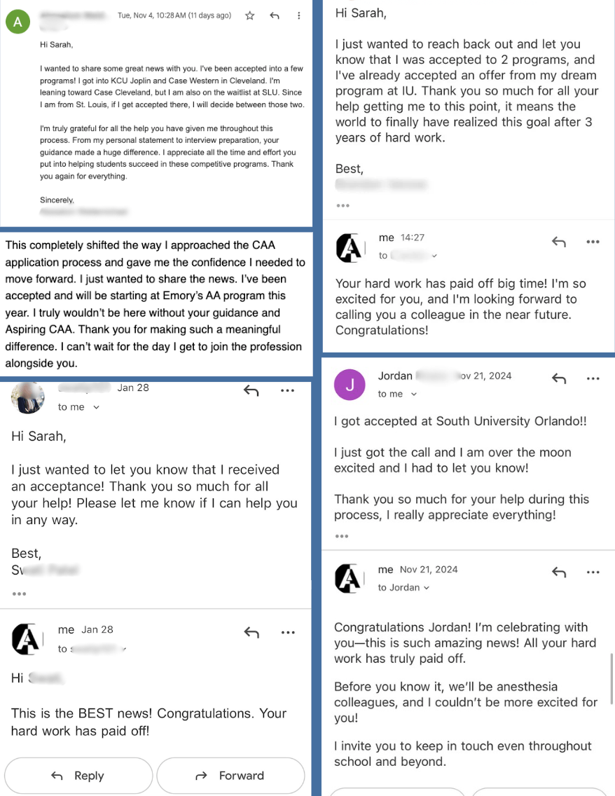 DISCLAIMER: All acceptance examples and client results are real, but not guaranteed. We cannot promise admission to any CAA program. Your outcome depends on your own effort, academic record, experience, professionalism, and how well you implement the coaching and strategies provided. We provide guidance, structure, and support, but you are responsible for taking massive and consistent action. If you are looking for a guaranteed result or a done-for-you solution, this program is not a fit.